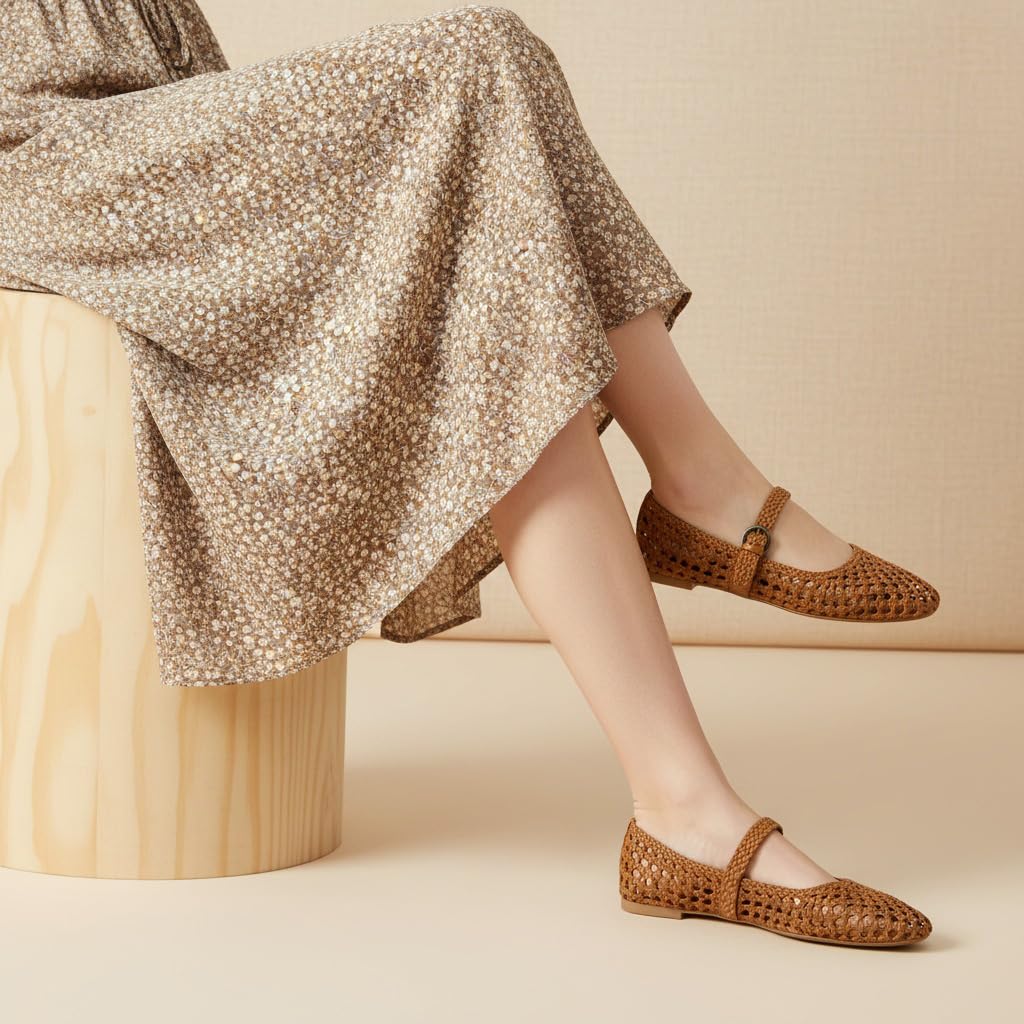 - ๐ ๐ฎ๐๐ฒ๐ฟ๐ถ๐ฎ๐น ๐๐ฒ๐๐ฎ๐ถ๐น - Crafted from hand-woven vegan leather, these mary jane flats feature a structured yet flexible open-weave design for breathability and lasting shape